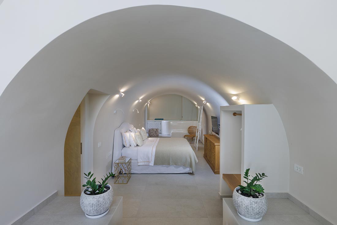 Our romantic cave suite sleeps 2 people. This remarkable cave combines elegance and style, offering a high-quality cave in the heart of Oia. This cave has a king-size bed, a spacious area, and an indoor plunge pool.